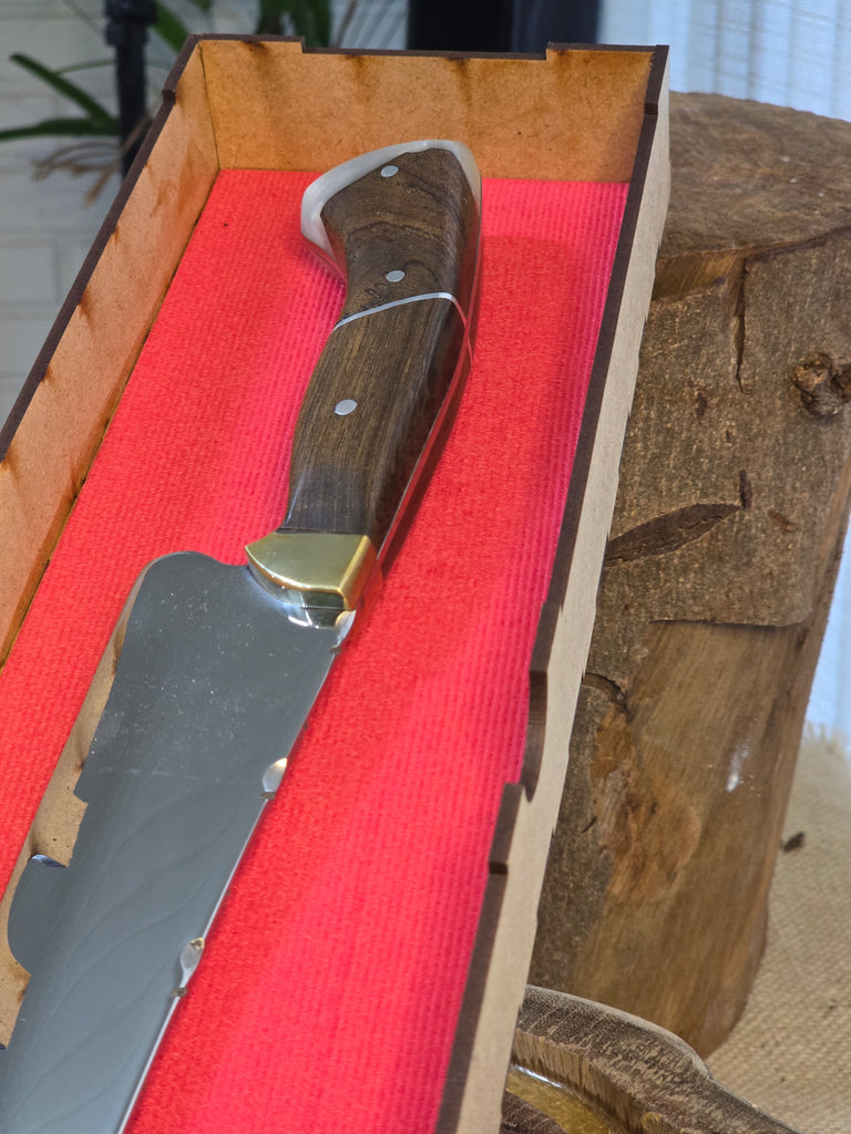 Inspirada no design clássico das lâminas persas, esta peça combina linhas elegantes, precisão de corte e presença no churrasco. A Faca Persa Facas do Mr. foi criada para quem aprecia facas que não são apenas ferramentas, mas extensões da experiência de preparar e servir uma boa carne.
