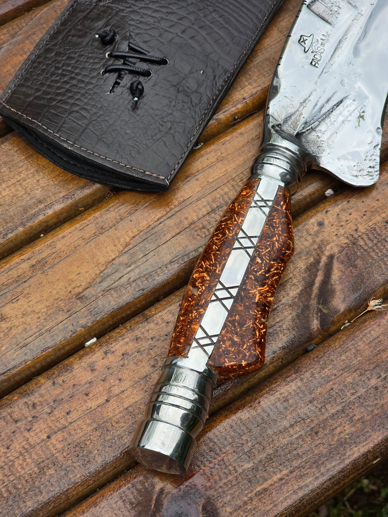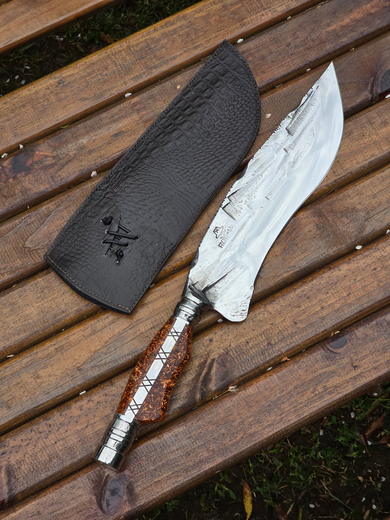 • 12 polegadas de lâmina forjada no padrão Brut Forge, imponente e inconfundível